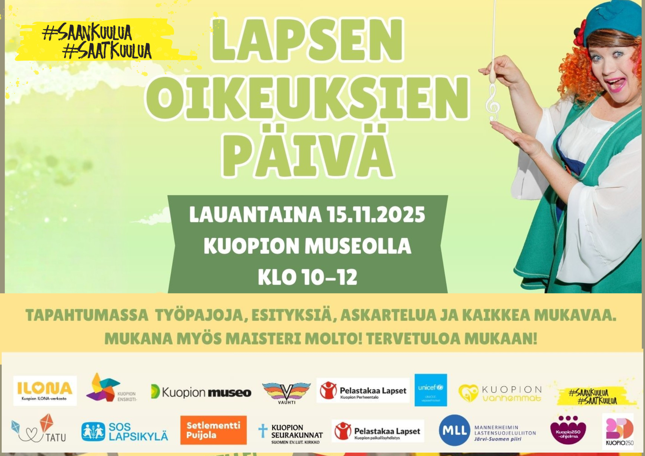 Lapsen oikeuksien viikkoa vietetään 17.-23.11.2025, teemana jokaisella lapsella on oikeus kuulua (olla osallisena ja tulla kuulluksi). Virallinen Lapsen oikeuksien päivä on to 20.11.